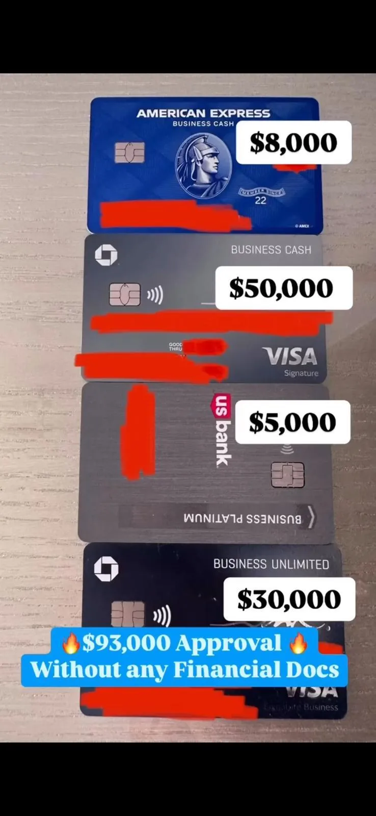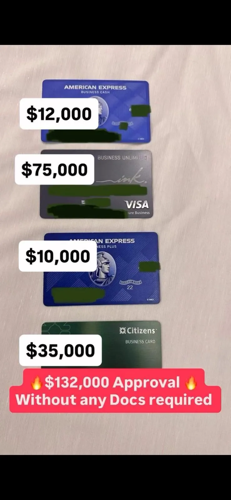 * Credit Card Portfolio: Minimum 2 personal credit cards with a combined limit of $5,000+.